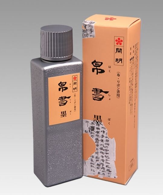 布書き専用に開発された液墨です。乾いた後は洗濯しても落ちません。リボン・旗・幟の他、手書きのオリジナルTシャツなどの制作にお薦めします。